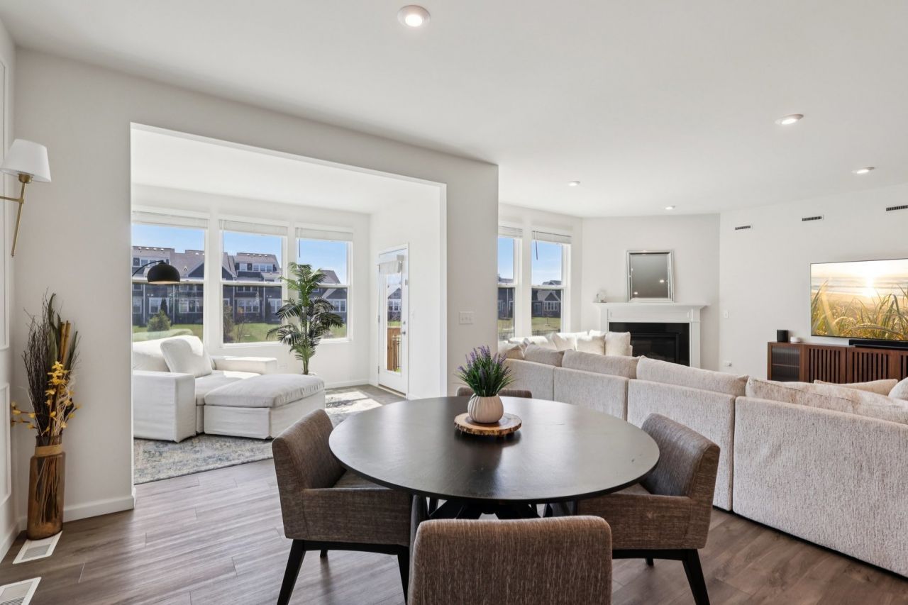 Experience elevated living in this stunning Continental model by Pulte Builders, located in the highly sought-after Naper Commons. Perfectly positioned across from open green space, a basketball court, and a park, this exceptional home also enjoys pond views from the backyard-offering both serenity and a vibrant community setting. Step inside to a bright, open-concept floorplan filled with natural light and enhanced by luxury vinyl plank flooring throughout. The thoughtfully designed main level features a dedicated private office, a sunroom ideal for morning coffee or relaxation, and a spacious family room anchored by a cozy gas fireplace. The gourmet kitchen is as functional as it is beautiful, complete with quartz countertops, a stylish tile backsplash, premium KitchenAid stainless steel appliances, a butler's pantry, and a generous pantry closet-perfect for effortless entertaining and everyday living. Designed with flexibility in mind, the main floor also includes a bedroom and full bath, ideal for guests or related living arrangements. Upstairs, an oversized loft provides additional living and recreation space, complemented by three generously sized bedrooms, each with walk-in closets. The grand primary suite is a true retreat, featuring two expansive walk-in closets and a spa-inspired bath with an oversized soaking tub. A convenient second-floor laundry room and well-appointed hallway bath complete the upper level. Step outside to your private outdoor oasis-a large fenced yard with tranquil pond views and an extended stamped concrete patio, perfect for hosting or unwinding in style. Additional highlights include a full unfinished basement with negotiable exercise equipment, an oversized water heater, and an extra-deep two-car garage with ample storage space and a 240V outlet ready for EV charging. A charming covered front porch adds to the home's exceptional curb appeal while offering picturesque views of the surrounding open space and parks. This is a rare opportunity to own a beautifully upgraded home in a premier location-where luxury, comfort, and lifestyle come together seamlessly. Schedule your private tour today; this one won't last long!