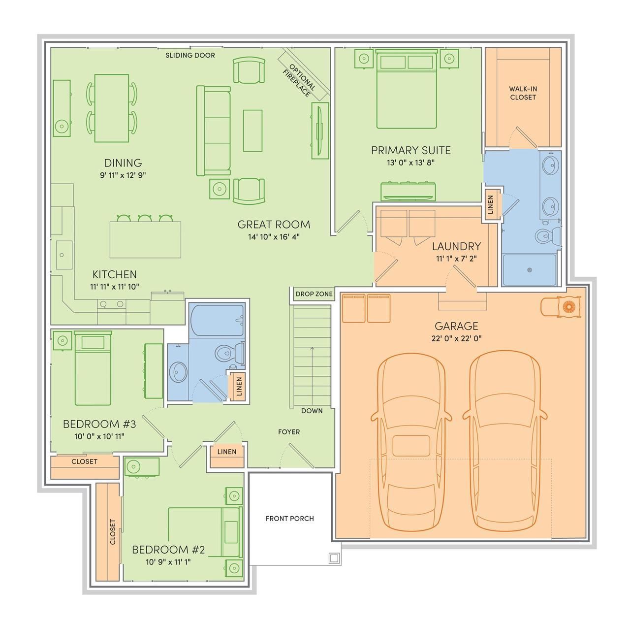 Move-in ready 4/26/26. This Harlow home features a thoughtfully designed, open-concept layout ideal for modern living. Offering 3 bedrooms, 2 baths, and a 2-car garage, this home showcases locally made, custom Auburn Ridge cabinetry, doors, and trim crafted to last. The stylish kitchen includes a center island, quartz countertops, and quality finishes from trusted brands like Kohler, Moen, and Shaw. Durable luxury vinyl plank flooring enhances main living areas, while painted solid-core doors provide superior sound control. Designer lighting curated from Kichler and Visual Comfort & Co. adds a polished touch. Smart Home+technology with integrated lighting control brings everyday convenience. Enjoy added peace of mind with a one-year warranty.