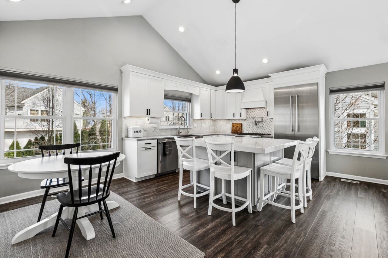 Welcome to 224 Penny Lane, a beautifully updated home in English Meadows. The stunning open kitchen, fully remodeled in 2019, is a chef's dream, featuring a large island, high-end Thermador appliances, and custom cabinetry. Relax or entertain in the inviting lower-level family room, complete with cozy heated floors, a fireplace, and direct access to the spacious backyard. The living room impresses with its soaring vaulted ceilings and is filled with natural light from the newer Anderson windows. Perfectly situated close to schools, this home offers both luxury and convenience.
