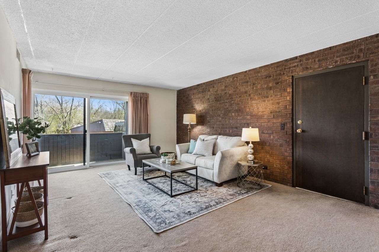 Welcome home to this fabulous light-filled unit offering the perfect blend of openness and defined living spaces. The inviting layout features an open-concept design while still maintaining traditional areas for the living room, dining room, and kitchen. A stunning brick accent wall adds warmth and character, creating a truly charming focal point. Enjoy seamless indoor-outdoor living with new slider doors from both the living room and the spacious primary bedroom, leading to your private balcony, perfect for relaxing or entertaining. The primary suite offers generous space, an impressive walk-in closet, and direct access to the bathroom featuring an extended vanity. Additional conveniences include laundry located just steps from your unit, a private storage closet in the basement, and a garage space ideally situated directly across from the building. Residents enjoy access to fantastic amenities including walking paths, a large outdoor pool, tennis courts, and a clubhouse. Ideally located within the highly sought-after Glen Ellyn school district, this home is just minutes from downtown Glen Ellyn and downtown Wheaton, the Metra, and Wheaton College, along with a variety of shopping and dining options. Enjoy added peace of mind with a newer furnace and A/C. Rentals are allowed after one year of ownership.